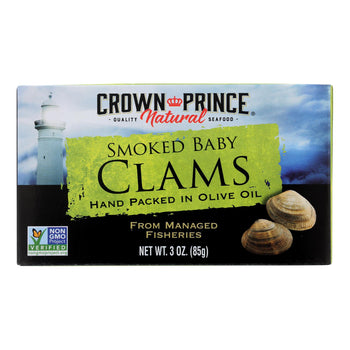 - Crown Prince Smoked Baby Clams in Olive Oil (3 Oz, 12-Pack)