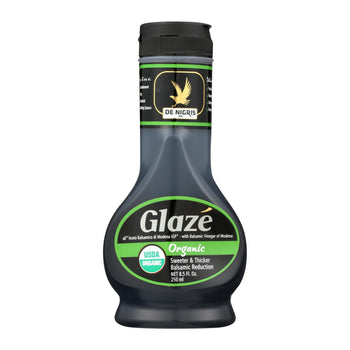 - Indulge in the thick, velvety texture of De Nigris Organic Balsamic Glaze, made from organically grown grapes.