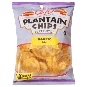 - Garlic Plantain Chips: Enjoy the crispy crunch and savory garlic flavor of La Fe's Plantain Chips, a perfect snack or side.
