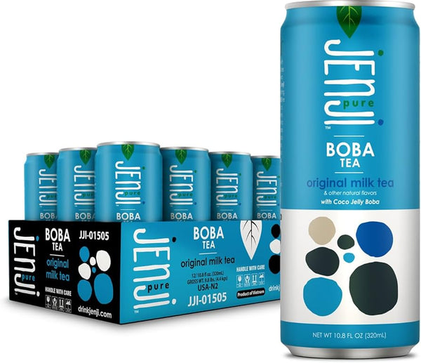 Craving the creamy, dreamy taste of milk boba tea but avoiding dairy? Jenji Original Milk Boba Tea offers the perfect solution. This pack of 12, 10.8 fl oz cans delivers authentic boba flavor without any dairy. Enjoy the classic taste you love, anytime, anywhere.