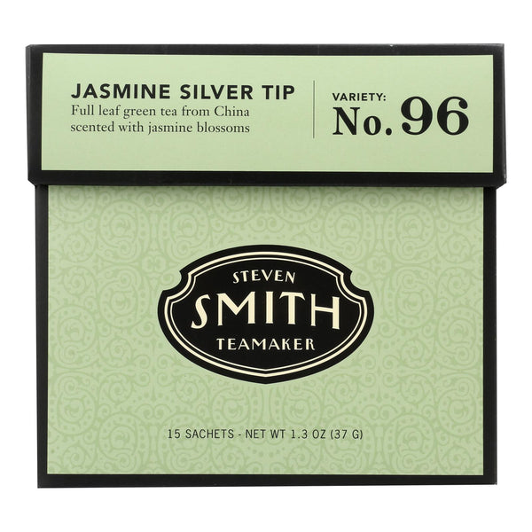 Smith Teamaker prides itself on sourcing the highest quality ingredients and using meticulous craftsmanship to create exceptional tea blends. The Jasmine Silver Tip Green Tea bags are made with full leaf green tea from China scented with jasmine blossoms.