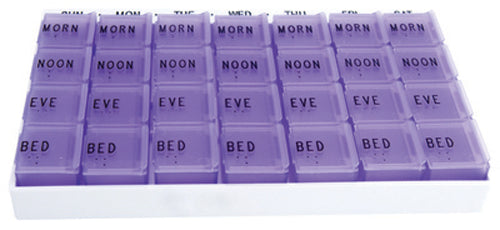 MediChest 7-Day Pill Organizer with Braille, 4 Compartments Per Day