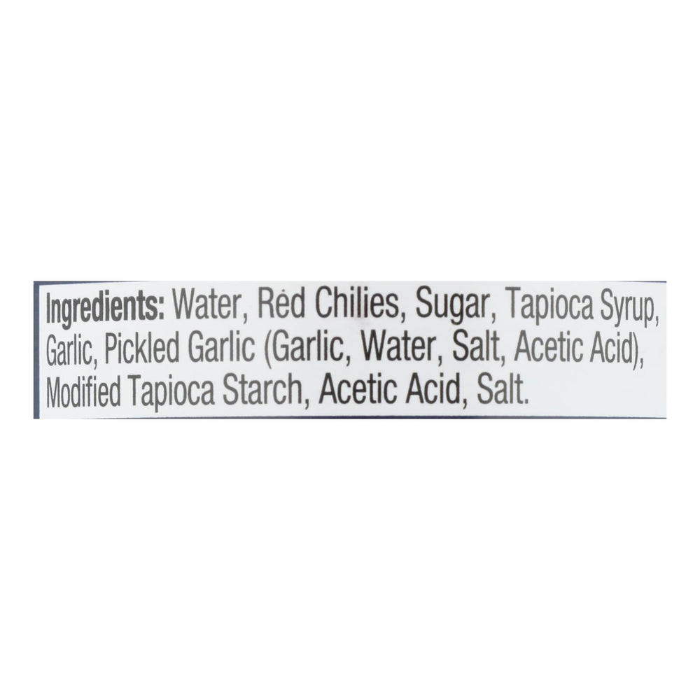 ingredients : water;red chilies;sugar;tapioca syrup;garlic;pickled garlic;salt;acetic acid;modified tapioca starch