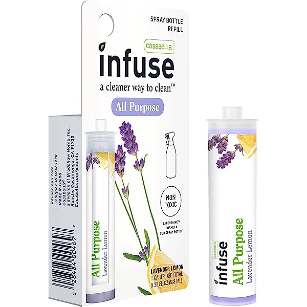 - Dilute 2 ounces of Multi-Surface Cleaner Refill Lavender Lemon with 16 ounces of water in the Casabella Multi-Surface Spray Bottle