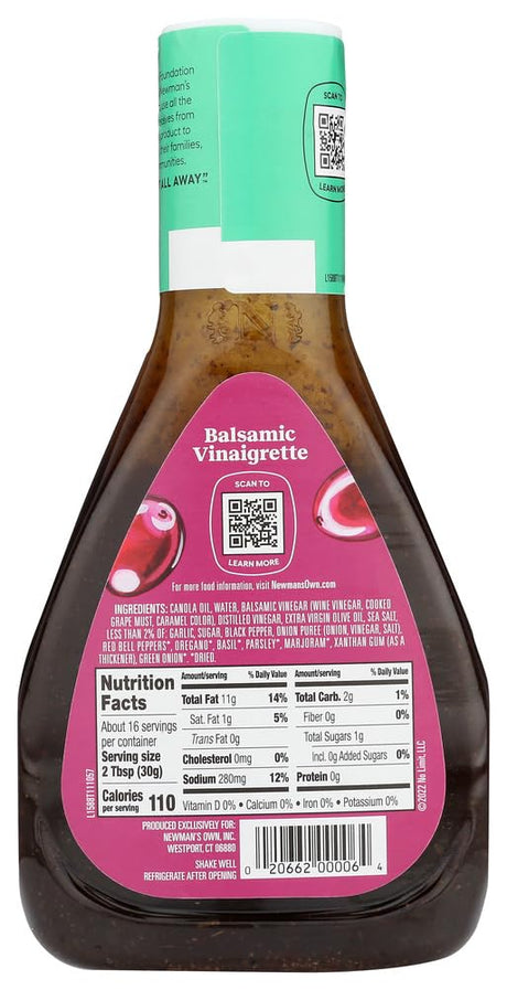 $5611Unit price /UnavailableNewman's Own Balsamic Salad Dressing - Vinaigrette - Case Of 6 - 16 Fl Oz