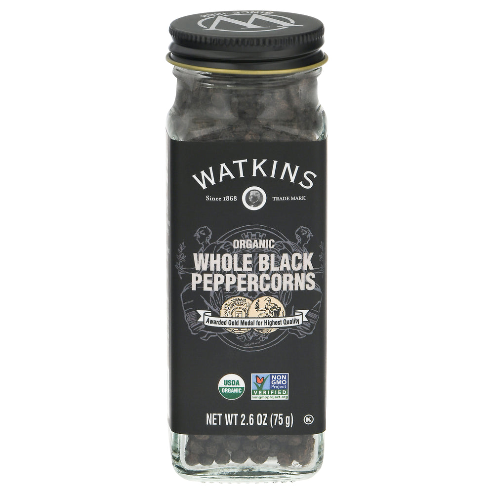 Elevate your culinary experience with Watkins Original Black Peppercorns, Whole. Bring the robust flavor and aroma of award-winning black pepper to your kitchen. Shop Now and taste the difference!