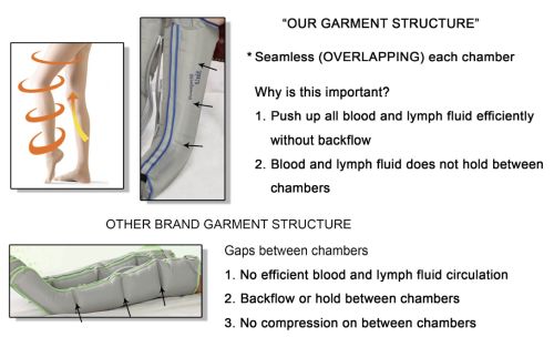 • Terapia de compresión secuencial de gradiente de 4 cámaras : proporciona una compresión precisa y controlada en cuatro cámaras distintas para brindar un apoyo linfático integral.