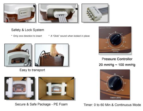 • Configuraciones de presión ajustables : personalice su tratamiento con configuraciones de presión que van desde 20 mmHg a 100 mmHg.