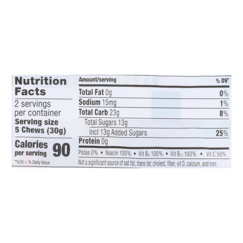 Cada porción aporta el 100 % de tu valor diario de vitaminas B6 y B12, lo que ayuda a estimular el metabolismo energético y a reducir la fatiga. Con solo 90 calorías por porción y sin ingredientes artificiales, estos masticables te ofrecen energía limpia cuando más la necesitas.