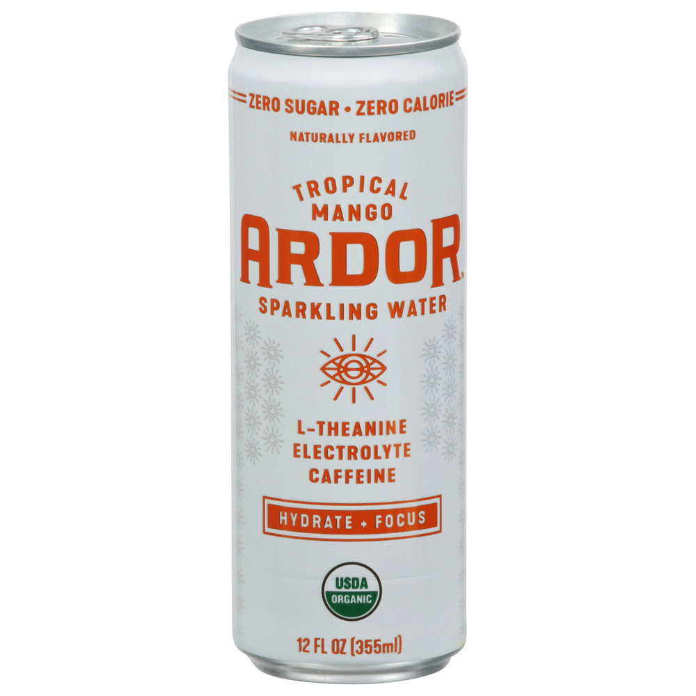 Agua con gas orgánica Ardor - Mango, 355 ml (paquete de 12) - Hidratación y concentración