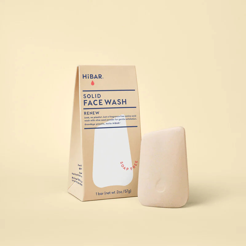 ¡Trate su rostro con una limpieza refrescante y sostenible con el limpiador facial sólido Renew de Hibar!