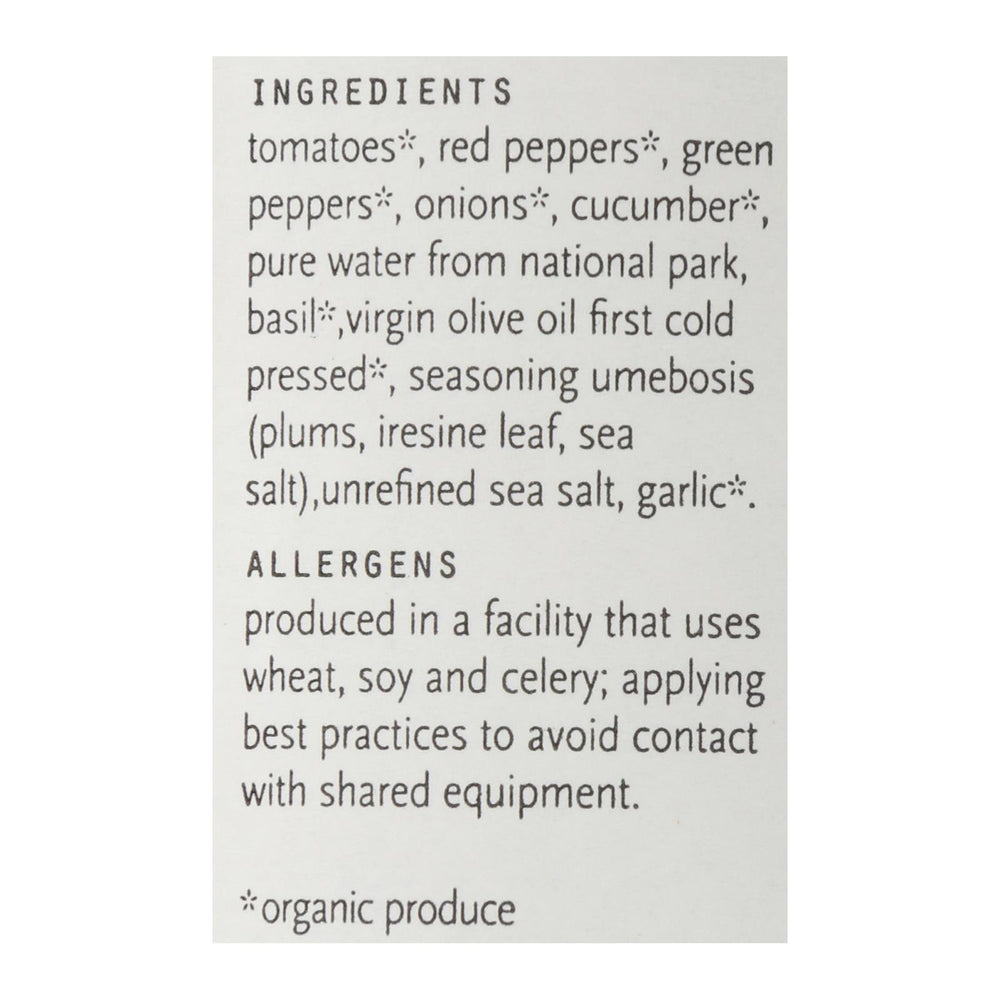 - Elaborado con vegetales frescos y orgánicos, incluidos tomates, pepinos y pimientos.