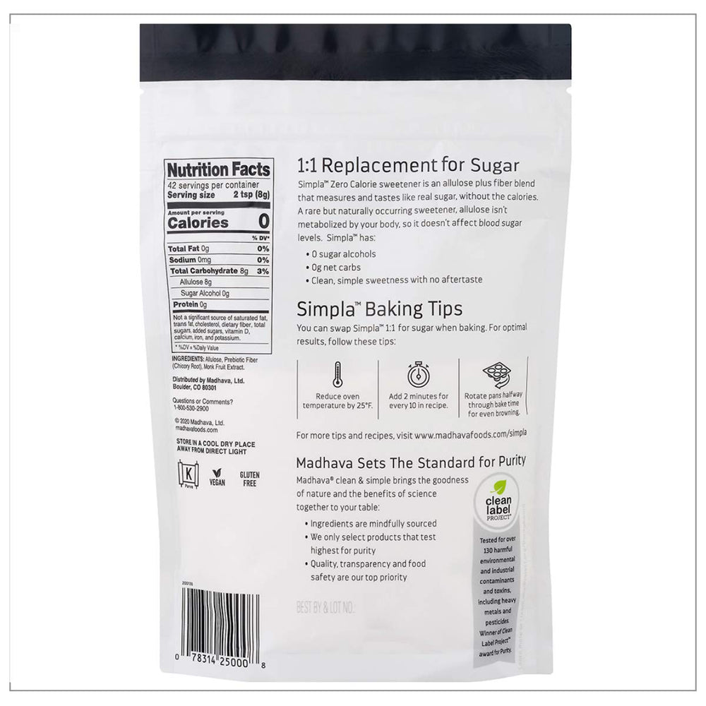 Madhava Honey - Edulcorante Simpla, alulosa limpia y simple (paquete de 6-12 oz)