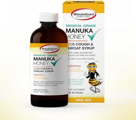 Manukaguard - Jarabe para la tos nocturna para niños, 113 ml - Alivio para la garganta infantil