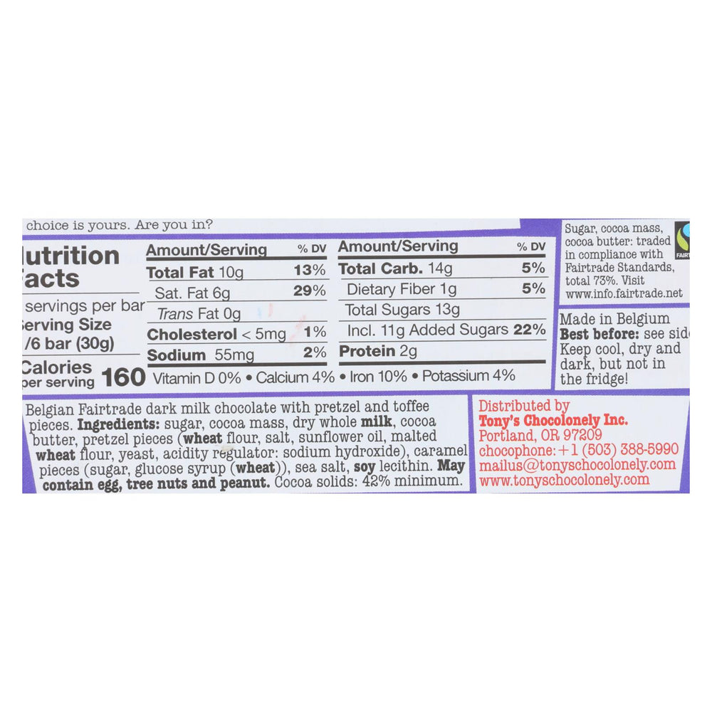 Tony's Chocolonely Bar Chocolate Dark Pretzel Toffee (paquete de 15 - 6.35 oz.)