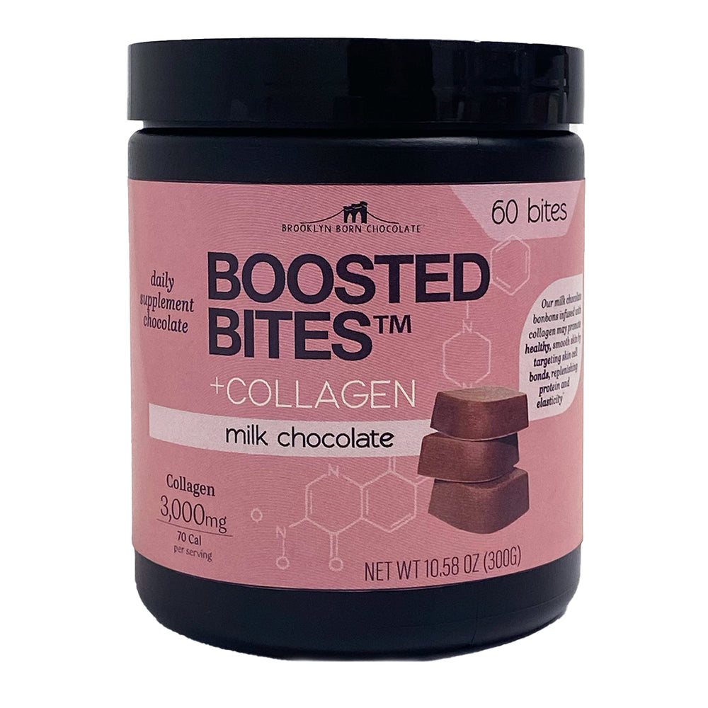 Ya sea que busques un dulce para disfrutar después de comer, un refrigerio práctico para llevar o un regalo especial para un ser querido, los bocaditos de colágeno de chocolate con leche Brooklyn Born son la opción perfecta. Su delicioso sabor y el colágeno añadido los convierten en un capricho único y delicioso.