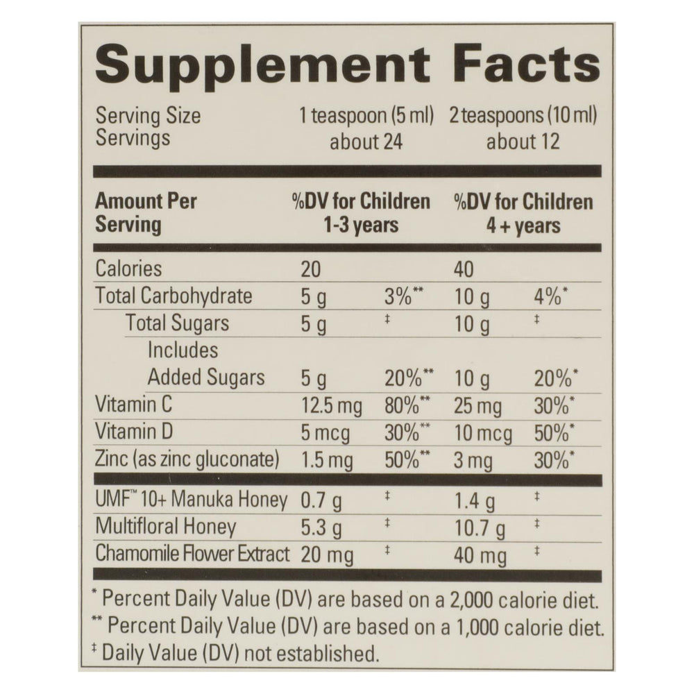 Jarabe calmante para niños Comvita con miel de Manuka natural, 4 onzas líquidas