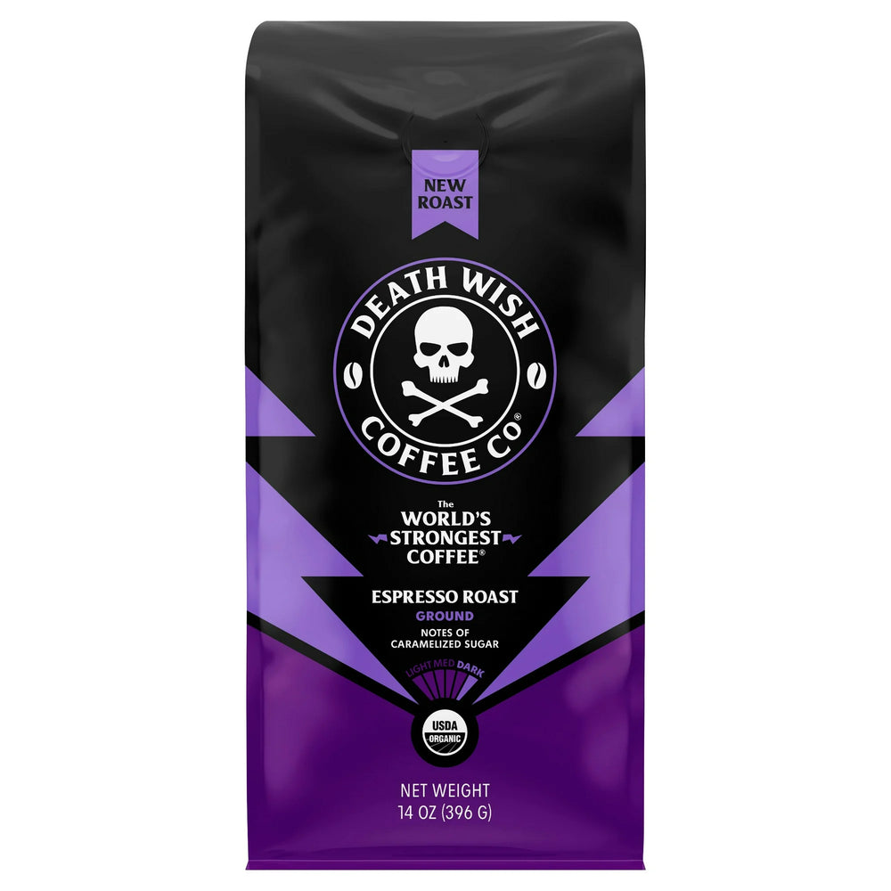 Death Wish Coffee - Espresso orgánico molido, 14 oz (caja de 6) - Granos de café más fuertes
