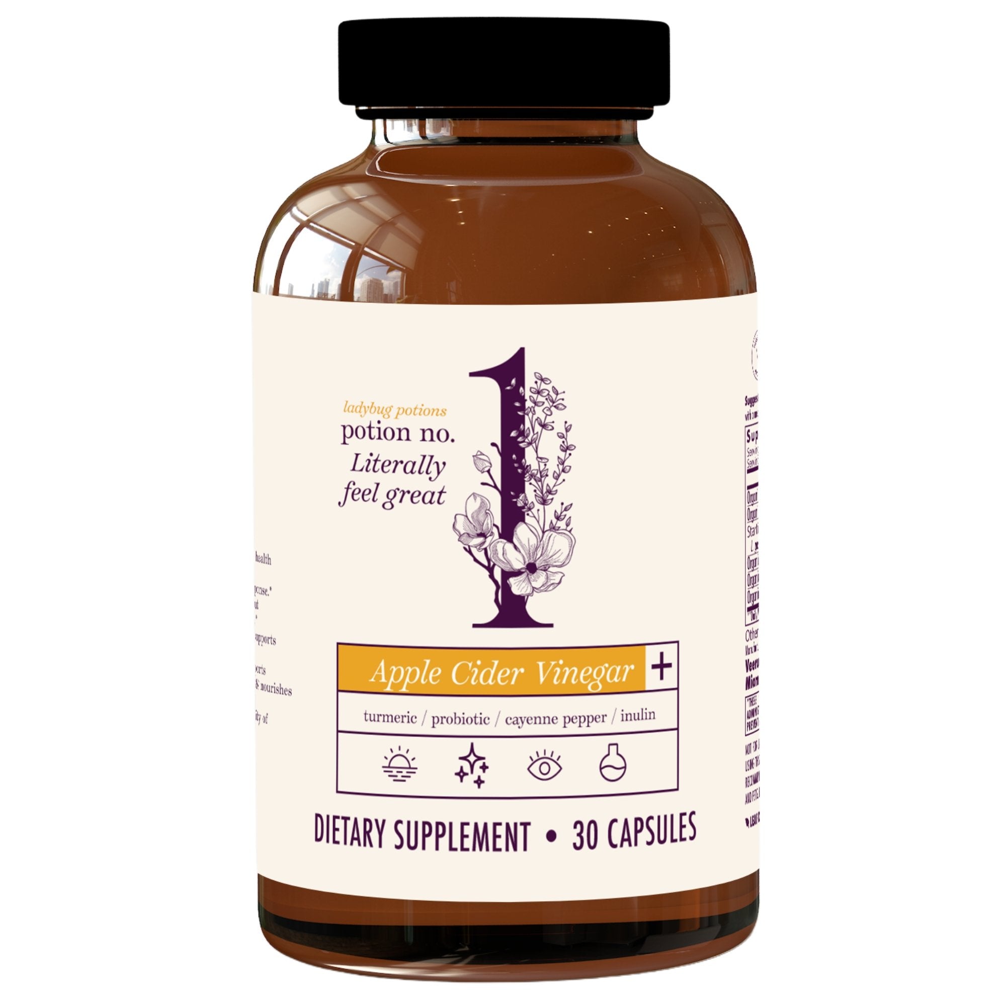 Descubra Feel Gr8 ACV Plus de LadyBug, una potente mezcla de vinagre de sidra de manzana (ACV), jengibre, limón, cayena y miel en prácticos sobres de 30 paquetes.
