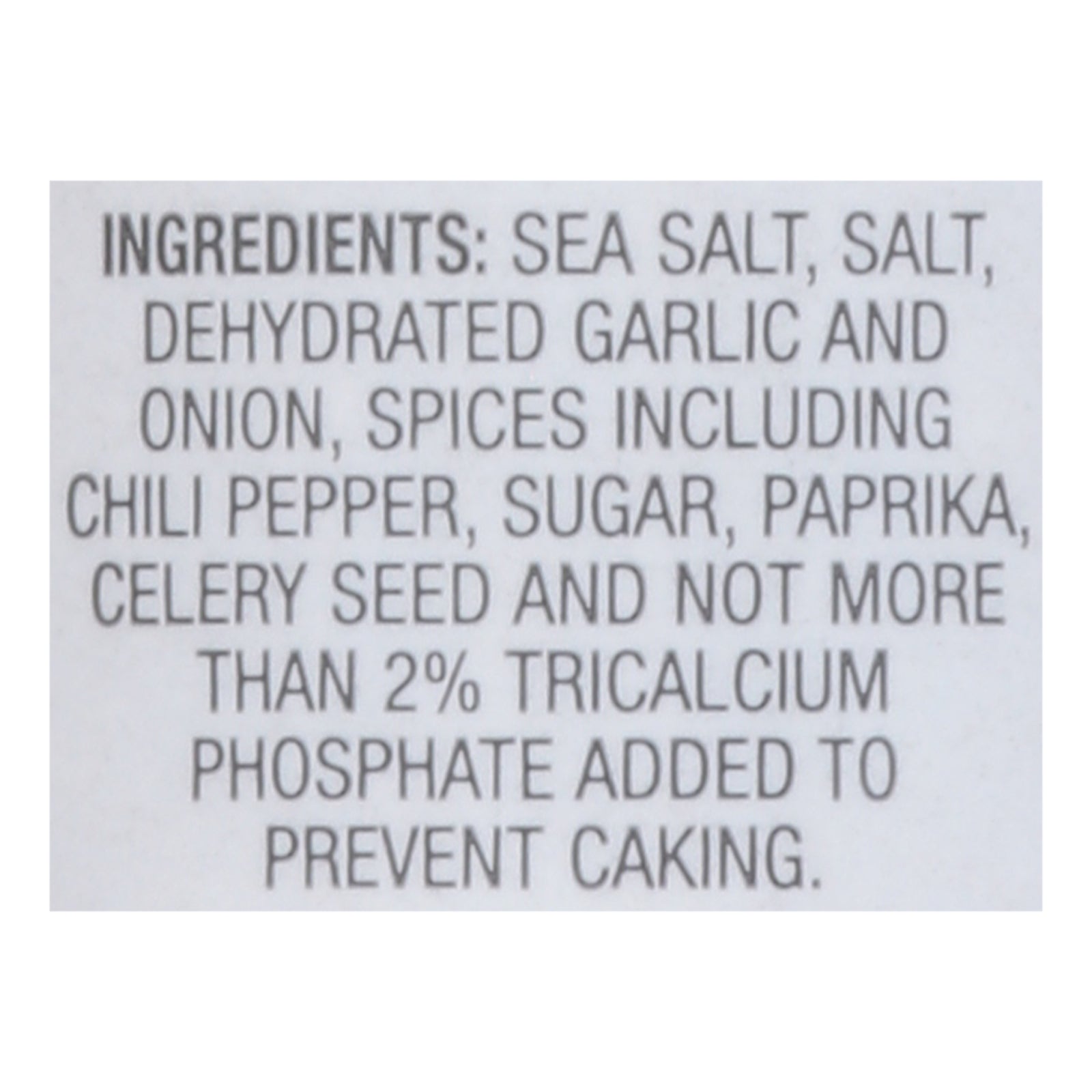 Sal, azúcar, especias, pimentón, azúcar moreno, ajo deshidratado, cebolla deshidratada, sabor natural, laca roja FD&C #40Orgullosamente hecho en los EE.UU.