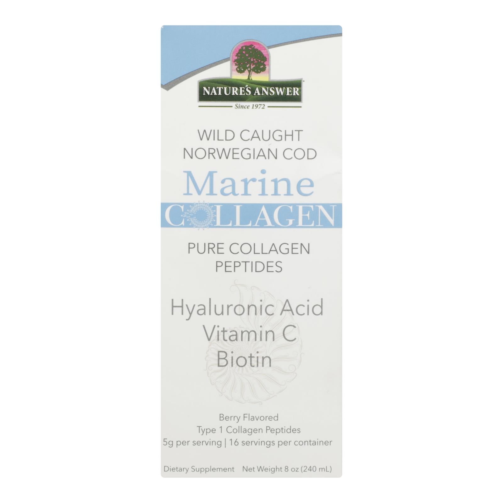 Nature's Answer Collagen Marine se extrae cuidadosamente de fuentes marinas de primera calidad, lo que proporciona una fuente óptima de colágeno tipo 1. Esta proteína natural es esencial para mantener la piel, las articulaciones, el cabello y las uñas fuertes y saludables.