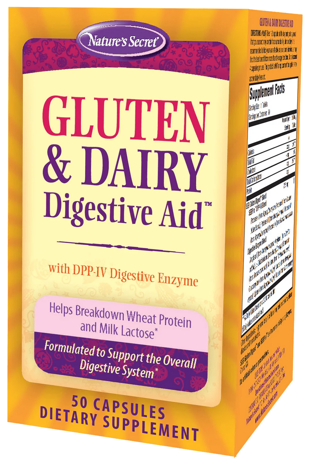 Nature's Secret - Ayuda digestiva para el gluten y los lácteos, 50 cápsulas (paquete de 1) - Suplemento de enzimas digestivas