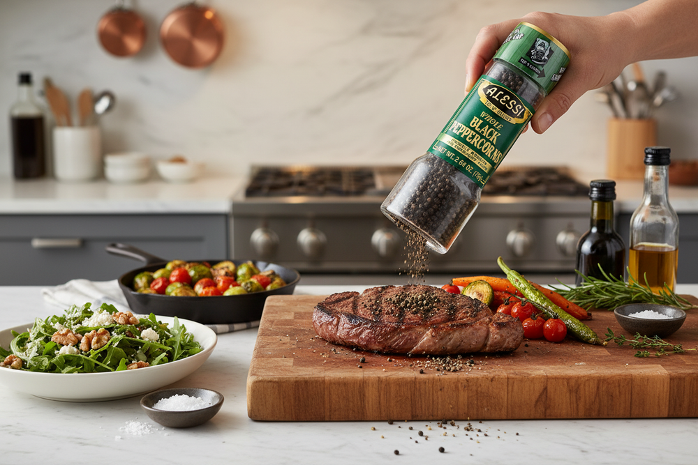 Alessi Grinder with Large Whole Black Peppercorns combines gourmet quality spice with convenient, stylish packaging. These premium whole peppercorns deliver bold, aromatic flavor with every twist, elevating your culinary creations from everyday meals to restaurant-quality dishes.