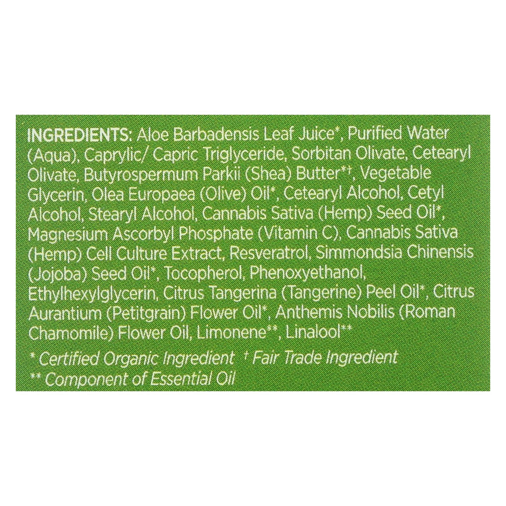 - Made with plant-based ingredients such as hemp seed oil and aloe vera