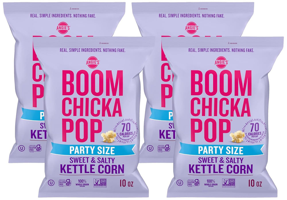 Treat yourself to the delightful taste of Angie's BOOMCHICKAPOP Kettle Corn. Order your pack of four 10 oz bags today and experience the perfect sweet and salty snack!