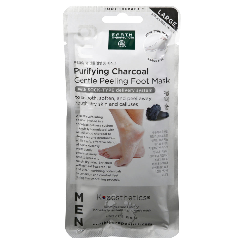 Experience the ultimate foot therapy with Earth Therapeutics Charcoal Foot Mask. This exfoliating and detoxifying foot mask is specially designed for men, offering a convenient and effective way to smooth, soften, and peel away rough, dry skin and calluses. Each package contains one pair of individually packaged, single-use sock-type masks, ensuring a hygienic and hassle-free treatment.