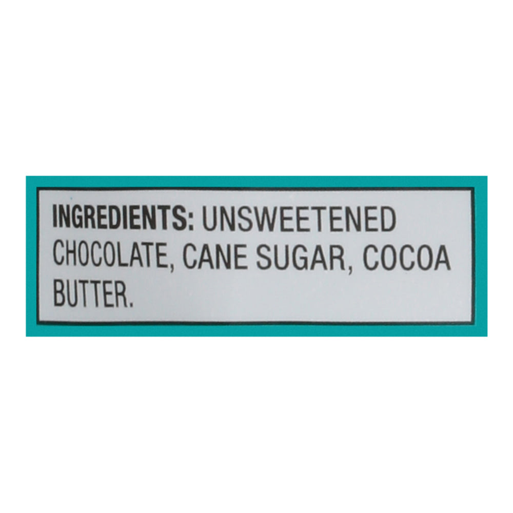 ingredients : unsweetened chocolate, cane sugar, cocoa butter.