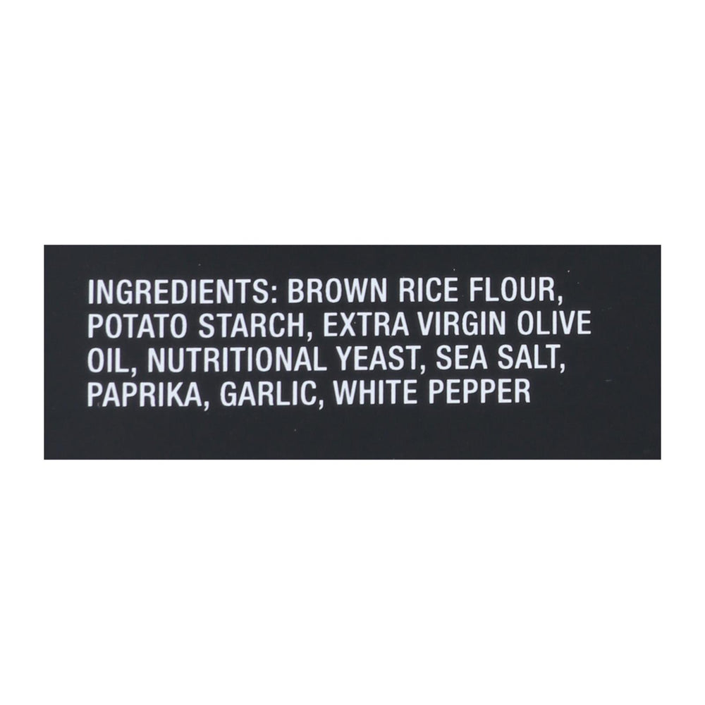 ingredients : brown rice flour;potato starch;extra virgin olive oil;nutritional yeast;paprika;garlic;sea salt;white pepper