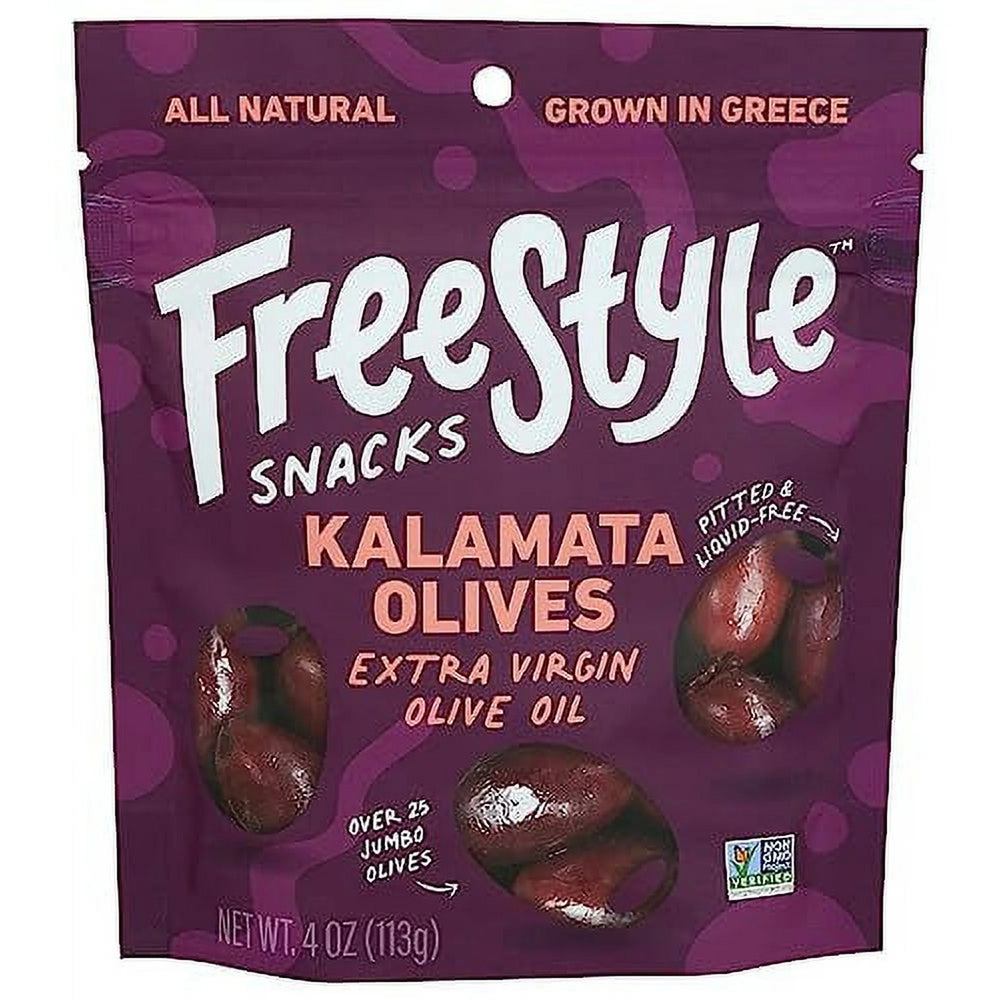 Experience the authentic taste of Kalamata olives with Freestyle Snacks. Order your pack of 12 today and elevate your snacking game!