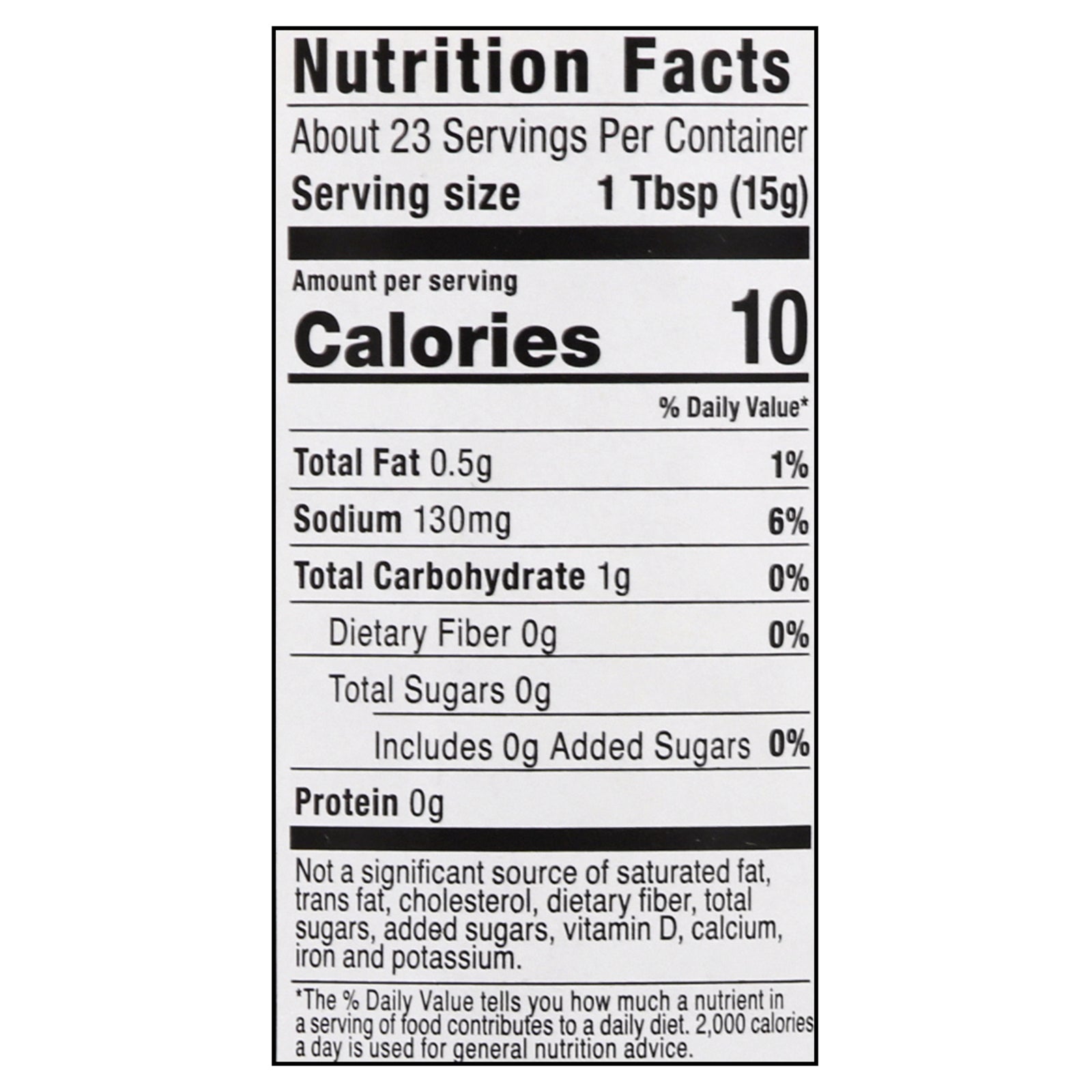 Water, Lemon Juice Concentrate, Natural Flavors, Sea Salt, Citric Acid, Xanthan Gum, Sodium Benzoate (Preservative), Potassium Sorbate (Preservative), Garlic Powder, Lemon Peel Extract, Rosemary Extract, Thyme Extract, Parsley Extract.