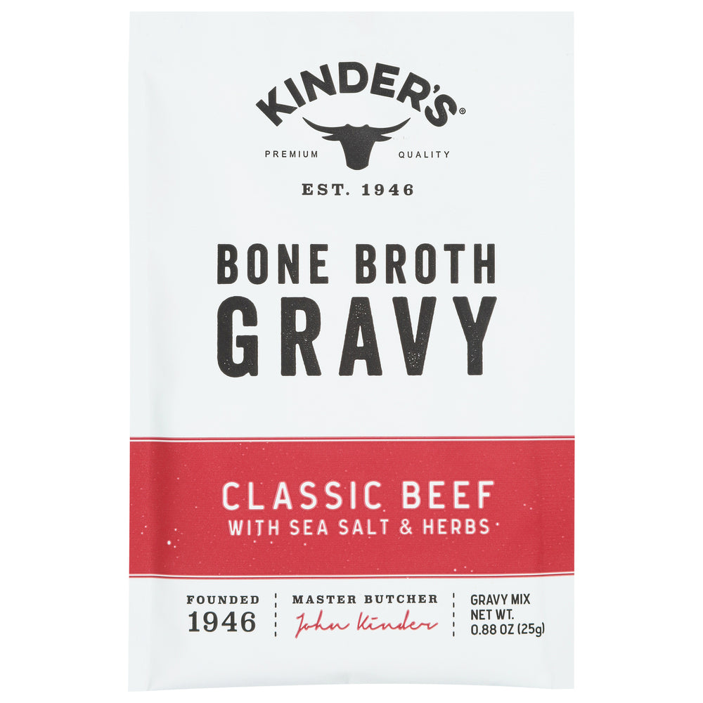 Founded in 1946 by master butcher John Kinder, Kinder's has been committed to providing exceptional flavor and quality for over 75 years. This Beef Bone Broth Gravy Mix reflects that legacy, offering a taste that has been trusted and enjoyed by families for generations. The country of origin is USA, California.