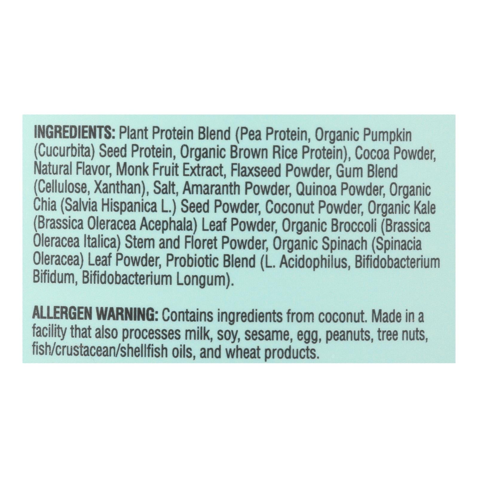 - Made with pea, brown rice, and pumpkin seed protein
