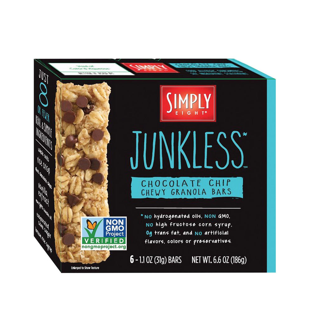 Simply 8 Junkless Chewy Granola Bars, Real Chocolate Chip, GMO-Free, Case of 8 (6.6 oz)