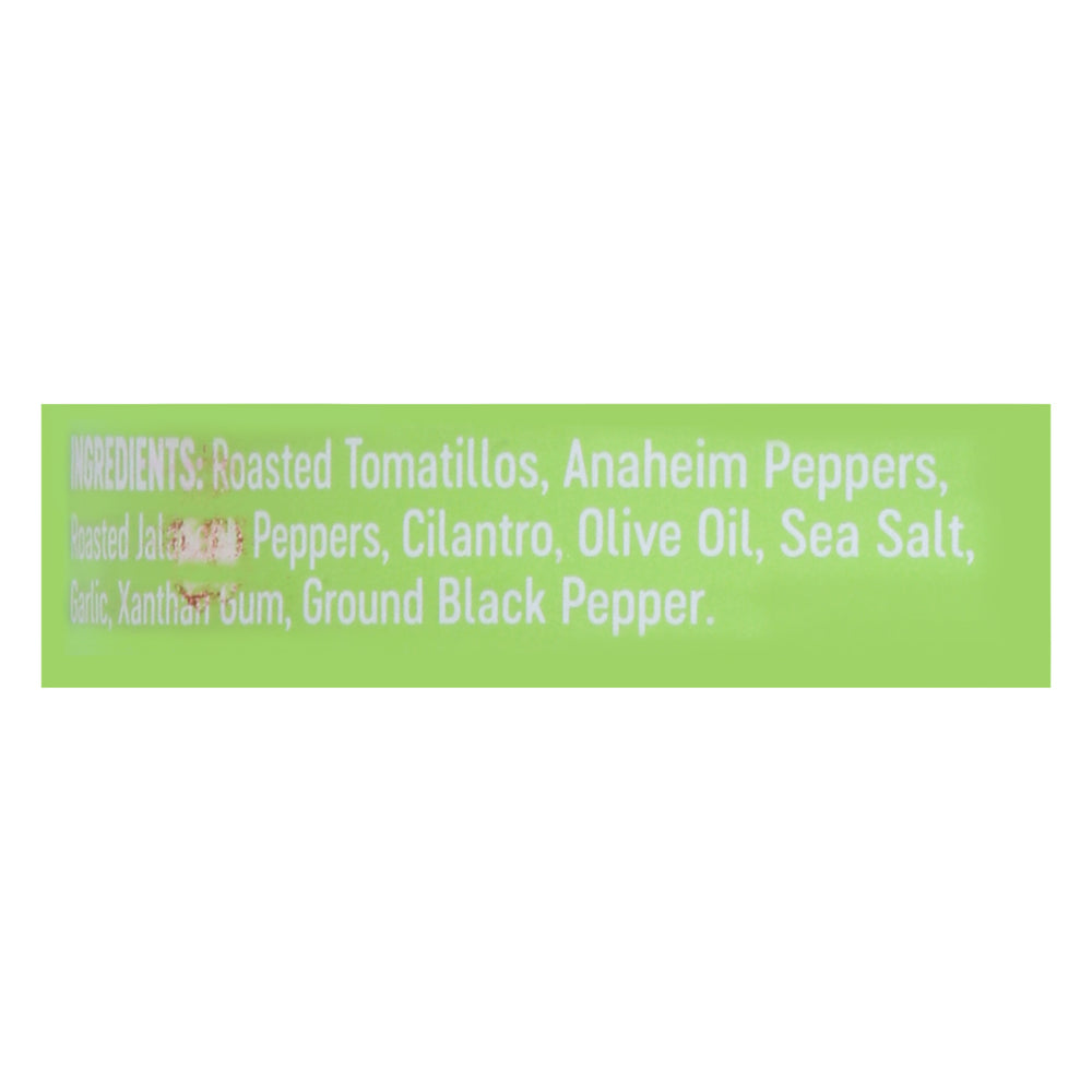 ingredients : roasted tomatillos;anaheim peppers;roasted jalapeno peppers;cilantro;olive oil;sea salt;garlic;xanthan gum;ground black pepper