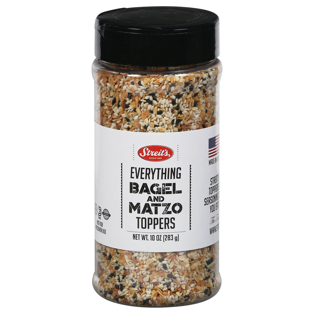 Experience a burst of flavor with Streit's Matzo Topper Everything. Each sprinkle is a symphony of savory goodness, transforming ordinary dishes into extraordinary culinary delights. Ideal for those who appreciate the vibrant taste of an everything bagel, this versatile seasoning adds a memorable touch to a wide range of foods.