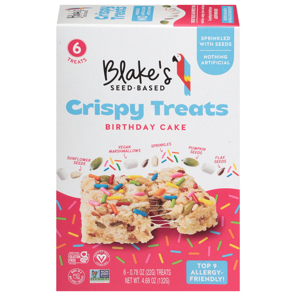 尽情享用 Blake's Seed Based Crispy Treat 生日蛋糕,这是一款适合所有人的美味无忧零食。这些无麸质且防过敏的零食是饮食受限人士的安全美味选择。每包包含 6 个独立包装的酥脆零食,非常适合午餐盒、课后零食或外出时快速方便的零食。这些酥脆零食提供美味而全面的零食体验。