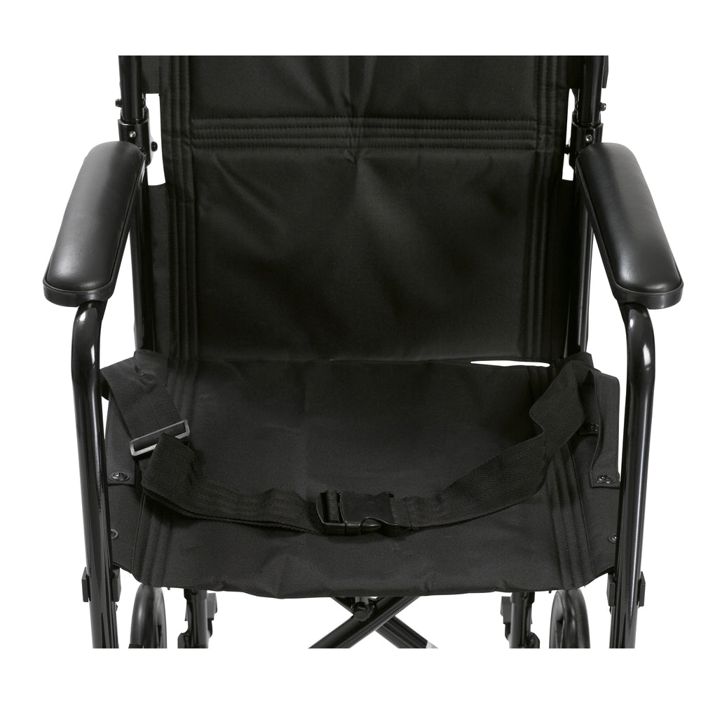 Lightweight Transport Wheelchair, Black, 17" Seat - Aluminum Frame, Foldable