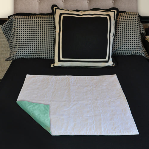 Blue Jay 可重复使用吸水垫设计方便易用,经久耐用。只需将垫子白色面朝上放在床单上即可。取下时,将垫子的四个角收拢,然后提起,并托住垫子的底部。