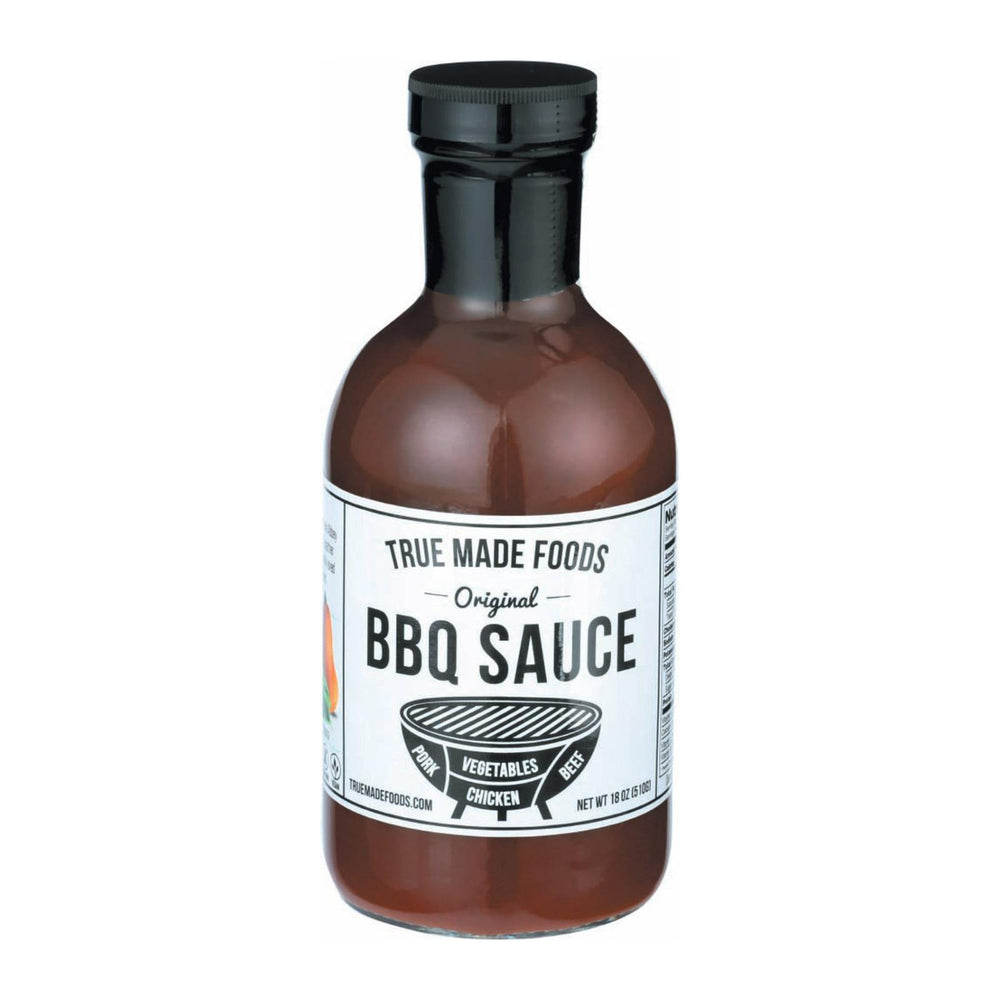 True Made Foods 蔬菜烧烤酱的独特口味源自番茄酱、蔬菜酱(南瓜、胡萝卜、菠菜)、浅棕色蔗糖、蒸馏醋和特殊香料混合物的混合。这种组合创造出浓郁的烟熏风味,无需任何人工添加剂。